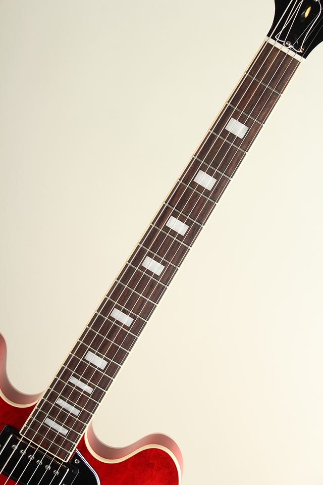 当モデルは通常のES-335 Sixties Cherryモデルをベースに、ブロック・ポジションマークを採用して生産された海外エクスクルーシブモデルとなります。