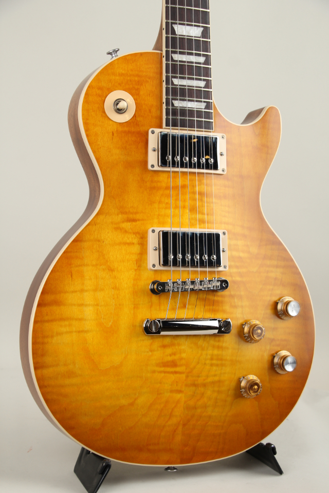 伝説的なこのレスポールは非常に特徴的なサウンドを持っており、フロントピックアップのマグネットを反転させているためミックスポジションでのフェイズアウトサウンドのアウトプットが可能となっております。