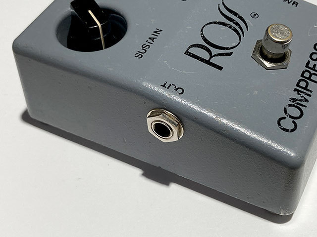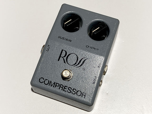 ROSSのコンプレッサーは当時誰もがご存知コンプレッサーの超定番モデルMXR Dyna Compと人気を二分するほどの名機でしたが、Dyna Compはパコパコした発音ではっきりと"コンプ感"を感じやすいサウンドを与える使い方が一般的。ROSSはしっかりとコンプ感が得られつつも非常にナチュラルでウォームな質感を持ち、そして音が太い。サスティンを伸ばしピッキング時の音を整えるための機器として、繊細な音作りを求める方に愛用されていました。コンプレッサーは他のエフェクターのような派手な演出をするものではありませんが、繋いだ楽器の入力レベルから弾き手のニュアンス、2つのノブを使用したコントロール、そして出力まで、それぞれの個性が掛け合い絡み合ってサウンドが生まれます。そんな個性を非常に心地よく表現してくれることによりROSSの人気が高まっていったとされています。