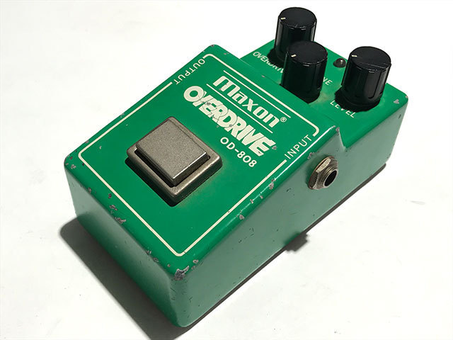 TS系回路の元祖。MAXON OD-808、1980年製オリジナル個体。言うまでもなく、TS系サウンドといえば様々なプレイヤーに愛され、今もなお褪せることなく語り継がれるオーバードライブの金字塔的存在ですが、こちらの筐体は1979年に発売された、初号機となるアイバニーズTS808と同様の中身を持つ国内用ブランドとなるマクソン製OD-808です。