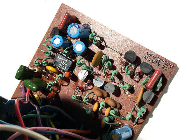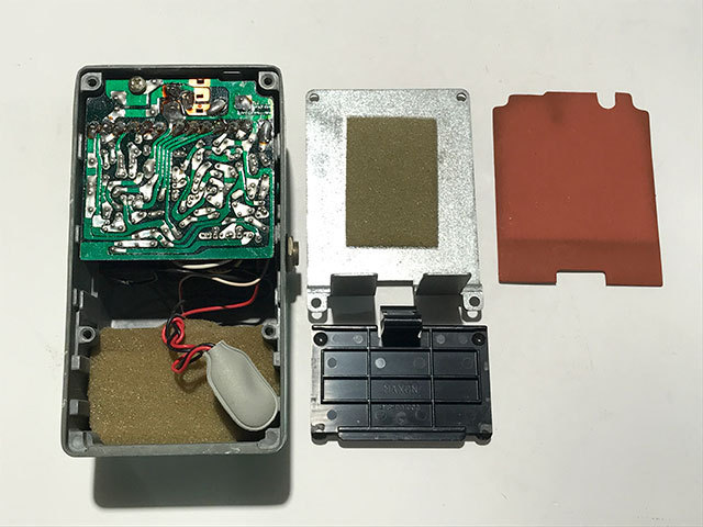 シリアルNo.106417、オペアンプにJRC4558D搭載、基盤にはDO-1201Aの記載があり、基盤と裏蓋を遮る絶縁体は茶色のファイバー紙。さらに、筐体前面にハイフン表記のOD-808、Rマークが記載されていることから、キャラメルスイッチ&ラージボックス初年度の1980年製個体となります。