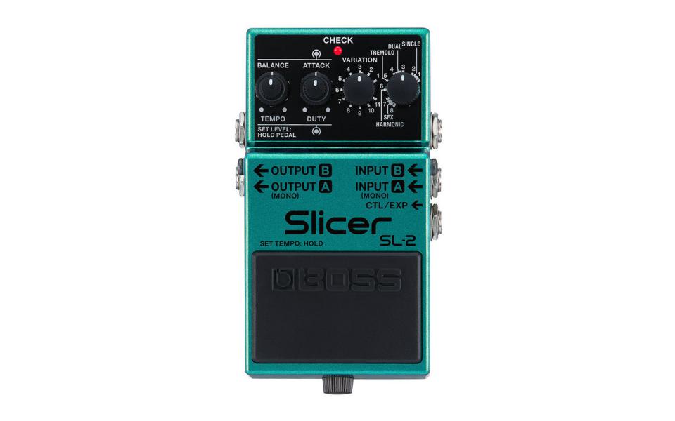 ビートに合わせてサウンドを分割することでリズミカルなサウンドを生み出すエフェクター、BOSSのSL-2 スライサー。2008年に登場したBOSS SL-20 Slicerは、2つのフットペダルと直感的なインターフェイスを備えたツインペダル・シリーズより発売されました。個性豊かなスライス・パターンとステレオ出力時のダイナミックに飛び交う音の動きは、BOSSらしいユニークなエフェクターとして、様々なプレイヤーから愛されてきました。
