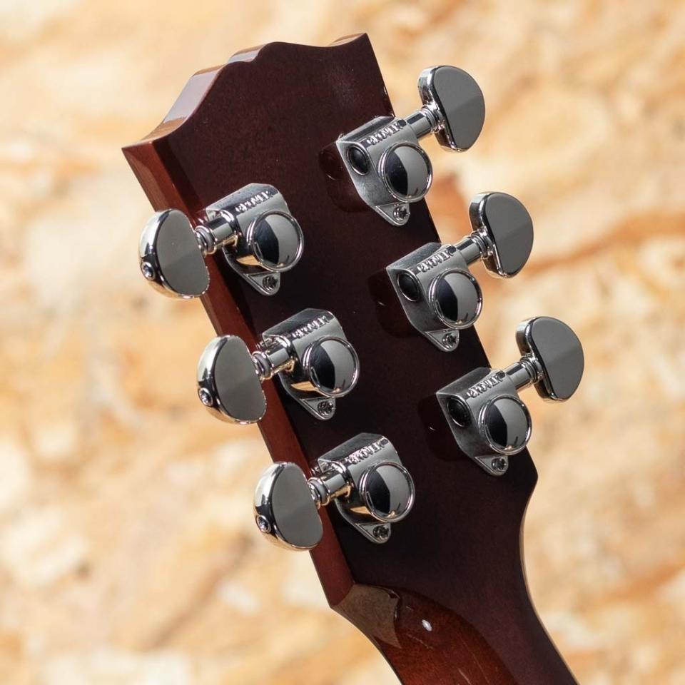 "The Workhorse(頼りになる馬車馬)" の愛称で信頼されるベストセラー・モデル。ウォームな低域とエッジの効いた中高域が織りなす優れた表現力でプレイヤーを支え、どんなときにも信頼できるパートナーとして1942年の登場以来、ギブソン・ラウンド・ショルダー・ラインナップの中心的役割を担い続ける”J-45”。基本的なスタイルは継承されつつもマイナーチェンジを繰り返し、年々進化し続けております。本器は日本国内向けエクスクルーシブモデルとして限定50本のみ製作される"J-45 Standard Natural Gloss"。シトカスプルーストップ、マホガニーサイド&バック、マホガニーネック、ローズウッド指板&ブリッジ、グローバーペグ、MOP指板ドット、べっ甲柄スモールガード、スキャロップド・Xブレイシング、L.R.Baggs Element VTCピックアップ標準装備。同じくナチュラルトップのJ-50と混同しそうになりますが、グローバーペグにべっ甲柄スモールガードを装備したJ-45 Standardのカラーチェンジモデルとなっています。ブライトで気っ風の良いレスポンス、ドライでどこか泥臭さを感じさせる倍音、外観と違わぬ荒削りなサウンド。発表以来、数々の名演を支えてきた"J-45"、移りゆく時代の中でも変わらぬ憧れと同時に一味違った趣を放つ一本です。
