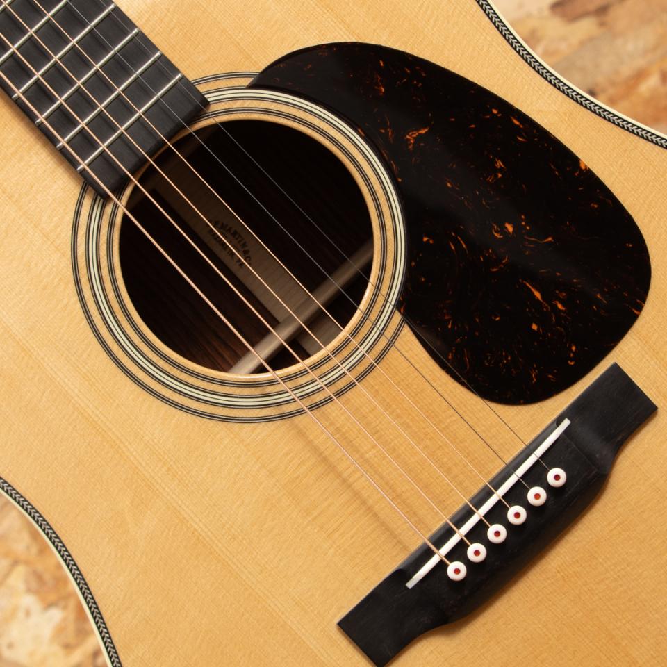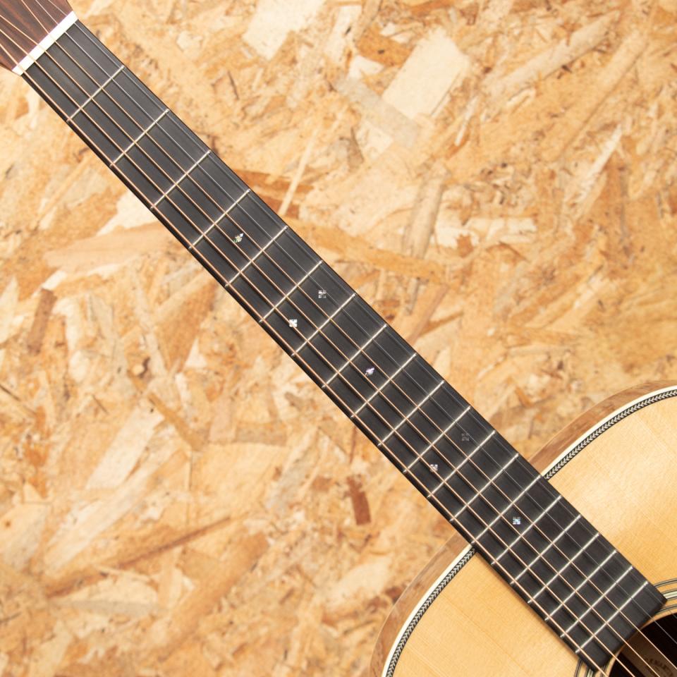 現マーチン工場の中でも、卓越した技術と豊富な経験から至極のギターを造り出す"Martin Custom Shop"。ここ数年一際話題を集めるオーセンティックシリーズの製作をはじめ、高い完成度を誇るこだわりのカスタムモデルを製造するトップクラスの部門。本器はトップ材にVTSが施されたプレミアムグレードのスイススプルースを、サイド&バックにプレミアムグレードのグアテマラローズウッド採用した”CTM D-28 European Top”。スイススプルーストップ、グアテマラローズウッドサイド&バック、ブラックエボニー指板&ブリッジ、モディファイドVシェイプセレクトハードウッドネック、ウェイバリーオープンバックペグ 、べっ甲柄ピックガード、ダイヤモンド&スクエア指板インレイ、1940オーセンティックジグザグバックストリップ、オールドスタイルゴールドデカールヘッドロゴ、2wayアジャスタブルロッド、ゴールデンエラスタイルのフォワードシフテッド・スキャロップドXヨーロピアンスプルースブレイシング、マーキススタイルホワイト&ブラックロゼッタ、ロングサドルブリッジ。やや硬質でクリアな音色ながら施されたVTS加工により重厚な音圧も感じられるまさにドンシャリな音色が特徴的な一本。プレミアムグレードの美しいトップ材の質感を存分に味わえるナチュラルカラーもハイクラスモデルとしての趣をより一層高めています。高次元の音圧に一役買っているモディファイドVシェイプのネックが採用されているこちらのモデルは演奏時に手に吸い付くような弾き心地ながらスタンダードラインとの違いをより主張してくれています。スタンダードラインでは満足が出来ない、特別な1本をお探しの方におすすめな1本です。