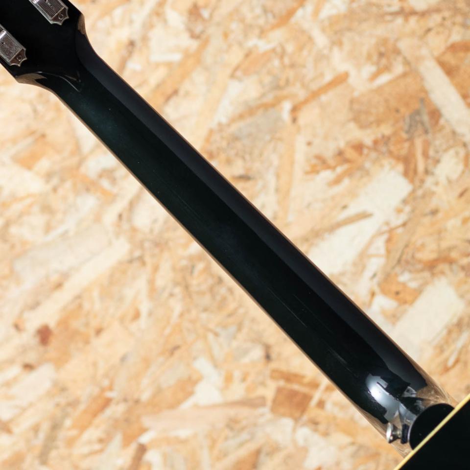 "The Workhorse(頼りになる馬車馬)" の愛称で信頼されるベストセラー・モデル。ウォームな低域とエッジの効いた中高域が織りなす優れた表現力でプレイヤーを支え、どんなときにも信頼できるパートナーとして1942年の登場以来、ギブソン・ラウンド・ショルダー・ラインナップの中心的役割を担い続ける”J-45”。本器は60年代の仕様を復刻した1960s J-45 Original 2020年製USED品。スプルーストップ、マホガニーサイド&バック、マホガニーネック、ローズウッド指板&ブリッジ、アジャスタブルサドル、ダブルリングロゼッタ、MOP指板ドット、トラディショナルハンドスキャロップド・Xブレイシング、エボニーブラックカラー。ピックガードはアンティークホワイトカラーの汎用品に交換済でネジ留めがされているこだわりのカスタマイズがなされています。キレとエッジのあるサウンド、パーカッシブな響きはこのモデルならではでしょう。サウンドホール周りに激しいピッキングによるスクラッチ傷、その他細かな打痕はございますがネックコンディション良好。過去にピックアップが取り付けられていたようで、ボディエンドにはジャック用に穴があいています。オリジナルハードケース付属。