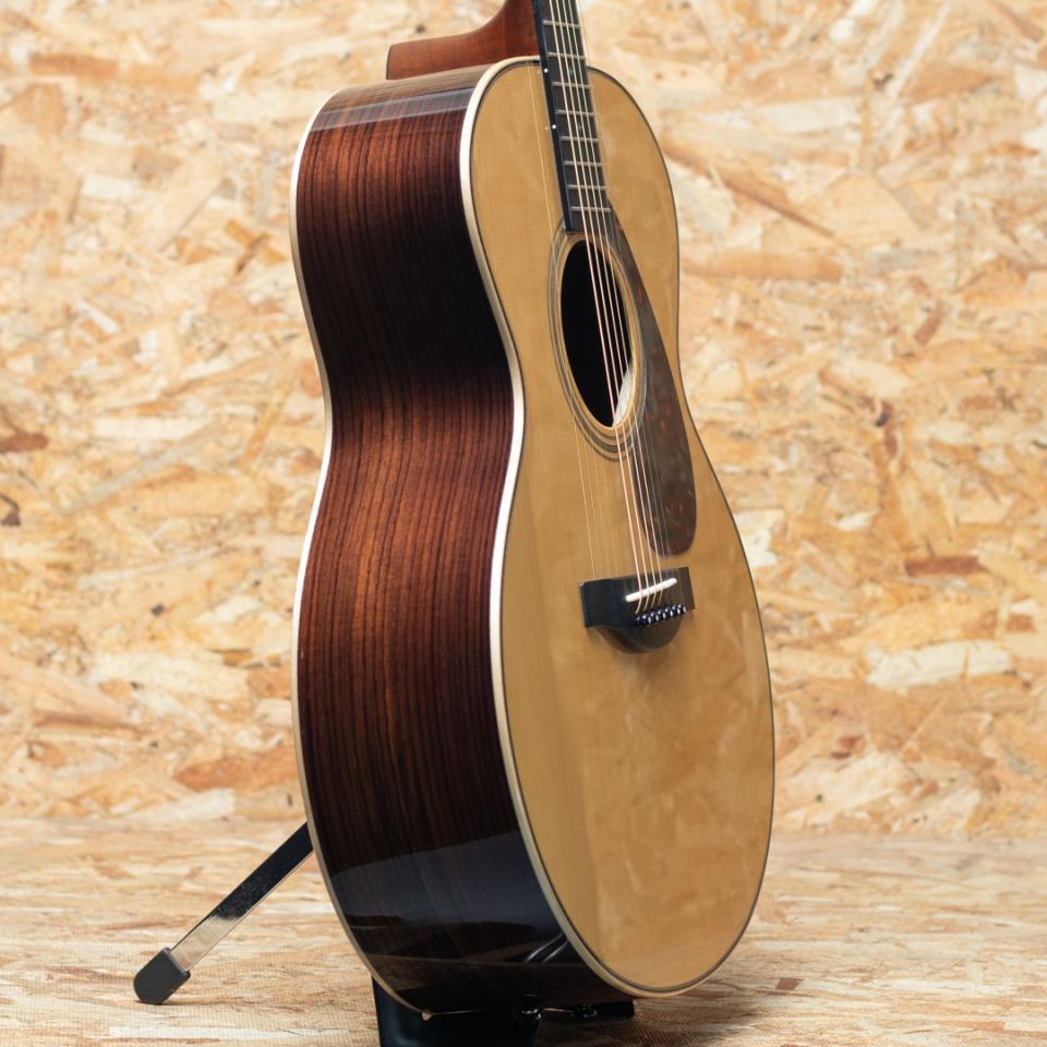 ヤマハを代表するギターとして、数多くの一流アーティストをはじめ、多くのギターファンに愛されてきたLシリーズ。“FG”シリーズの上位機種として1974年にL-31を発表して以来、時代のミュージックシーンを彩り、数多くのアーティ ストやギターファンに愛され、日本の音楽シーンを支えて参りまた。"L=Luxury(豪華)"を冠にした本シリーズは、常にベストサウンドを追及してきたヤマハギターの歴史が生み出した結晶とも言えるシリーズです。本モデルは"L26"のミディアムジャンボボディモデル"LJ26 ARE"。すでに高い評価を頂いているARE処理を施したイングルマンスプルーストップ材に、サウンドメイクの肝であるトップブレイシングに新デザインを採用。かねてよりLシリーズで採用されてきたノンスキャロップ・ブレイシング構造を、LL-TAKA製作時に得た技術をもとに最新の解析・モデリング技術と熟練のクラフト マンシップによりさらに改良。より深く豊潤な中低音を実現しました。裏側板はインドローズ単板を採用。ゴールドパーツペグ"SD-700XG"、ウッドバインディングを採用し、落ち着きのあるヴィンテージテイストの仕上りとなっています。また、5 層構造ネックの演奏性向上を望み、ネック形状や指板のエッジ処理、弦高、弦間ピッチなど、細部にわたる改良が施されました。補強芯には、順反り・逆反りの両方向に力が効くダブルアクショントラスロッドが採用されており、より精度の高いネック調整が可能です。ヘッド裏にローズウッドの化粧板があしらわれ、ヘッド部を強化するボリュート加工が施されています。また、従来、カスタムモデルで採用されていたネック・ボディ接合部の形状が採用されました。接合面積を拡大し振動伝達効率を高め、より深いサステインが獲得されました。オープン・ギアタイプのペグをはじめとした落ち着きのあるヴィンテージフレーバー溢れるデザイン。外観と同様に、開放的で成熟したサウンドと、抜群のレスポンスを備えたモデルです。本器はサウンドの良いとこ取りとも言われ、ギタリスト、アーティストに人気の高いLJシェイプ。ハイとローの輪郭の良さ、存在感、ミドルレンジの絶妙な帯域、そしてボディの程よいくびれの深さが身体になんとも言えない心地良さを与えてくれます。