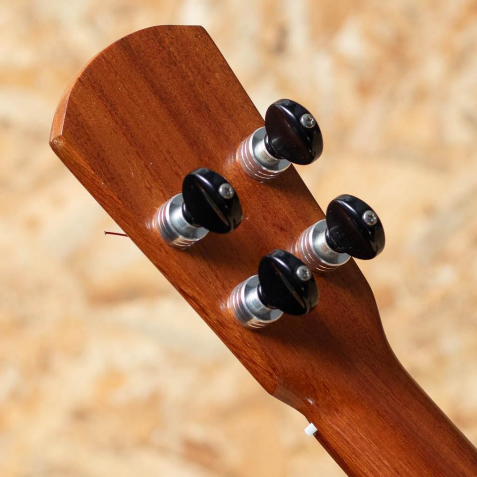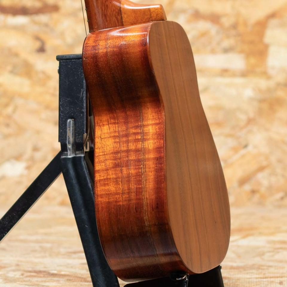 Gストリング社は1993年に設立されたメイド・イン・ハワイブランド。こちらは2000年代に製造されたUSED品。ハワイアンコアボディ。マホガニーネック、ローズウッド指板&ブリッジ、ドット指板インレイ。現在はアメリカにて手工で製作され、価格も高騰しておりますが、当時はオワフの工房でチームで製造されており、手の届きやすい価格帯にて幅広く展開。たちまち人気を集め、ハワイアン3大ブランドの一つとまで称されていました。ハワイアンコアらしい甘みたっぷりのサウンドで、素朴さと愛らしさも感じるハワイメイドならではの味わい。ハイビスカスデザインのレーザー加工が施されたおしゃれな1本です。ペグはシルバーブラックボタンバンジョーペグへ交換済。数カ所ほど打痕があるものの、大きなダメージはなくプレイコンディションは良好。ぜひご検討くださいませ。チップボードケースが付属いたします。
