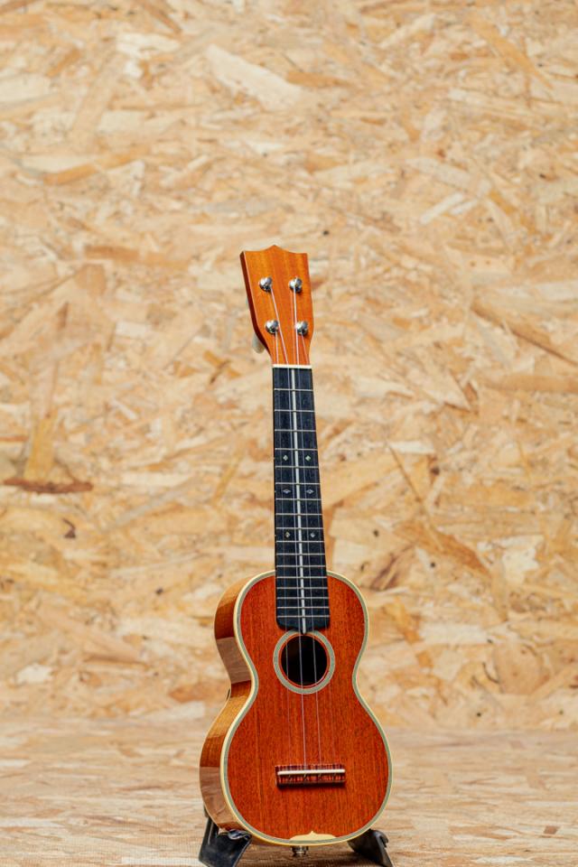 広島のココナッツカフェプロデュース、国産ウクレレブランド”Nutsco”。現在は製作されておらず、非常に少数生産だったためなかなか見かけることのできないウクレレです。本器はヴィンテージマーチン”Style-3M”を基に製作されたUSED品。マホガニーボディ、ワンピースホンジュラスマホガニーネック、エボニー指板、マホガニーブリッジ、フィッシュマン製パッシブタイプのアンダーサドルピックアップ搭載。指板のダイアモンドペアインレイ、センターライン、ボディバインディング、ロゼッタ、ボディトップエンドのオーナメント等、拘りの仕様と忠実な再現度を誇ります。素朴だけれど優雅、はっきりとした音色だけれど優しい響き。ごく僅かに塗装に曇りがありますが全体的にきれいな外観を保っており、演奏性も良好。セミハードケースが付属いたします。