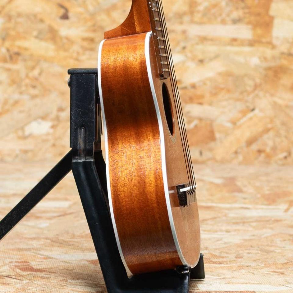 京都にて占部英明氏、息子の直宏氏により手掛けられる国産手工ブランド。ホンジュラス・マホガニーボディのミディアムサイズモデル。