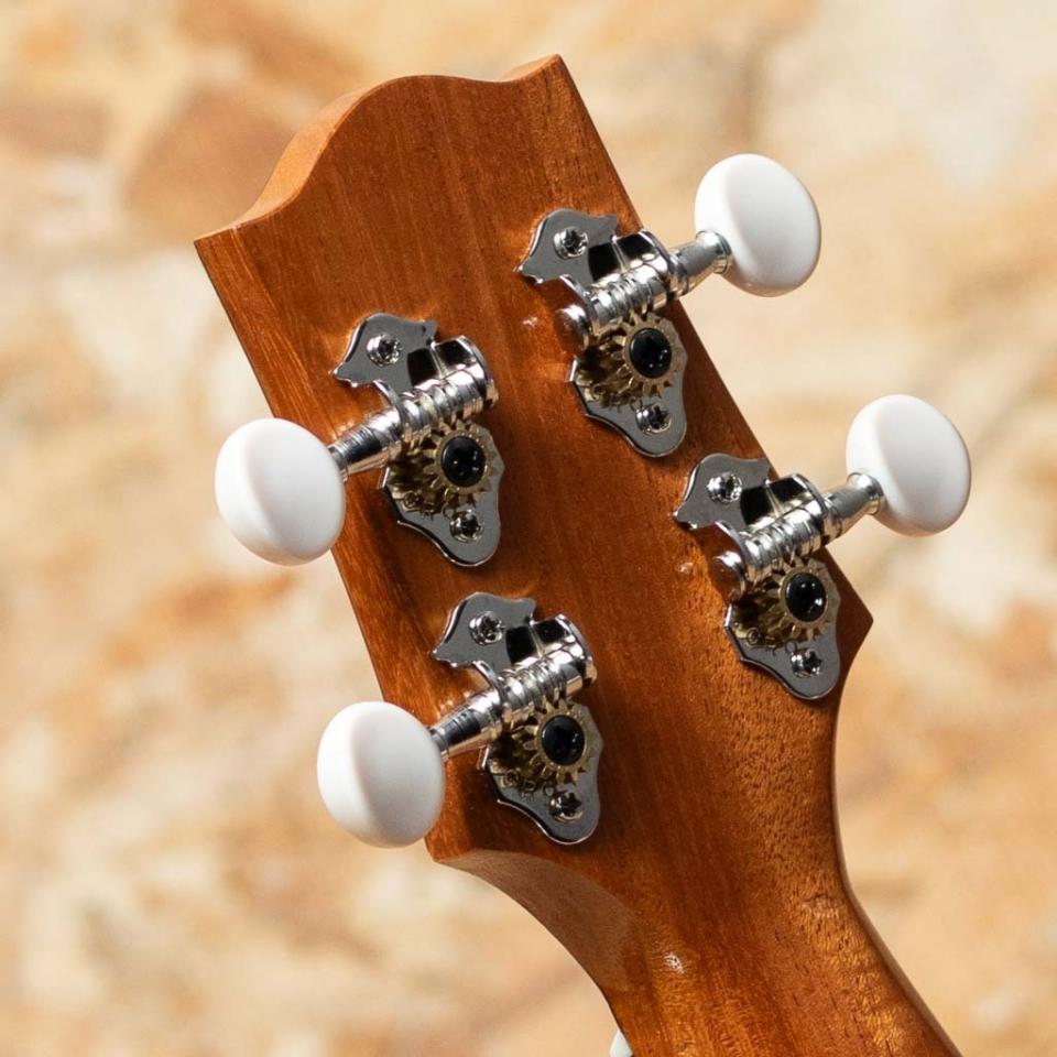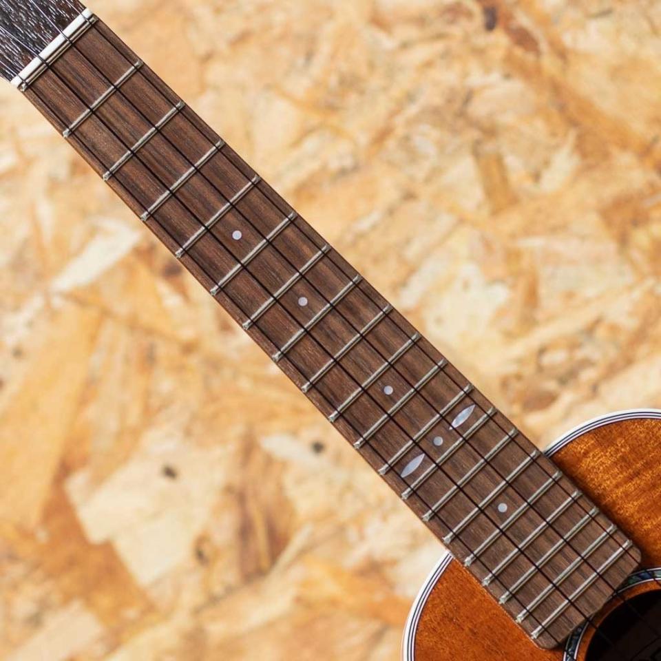 ・占部ウクレレ特有のやや薄めで握り易いネックシェイプ、0フレット仕様でローポジションの弾き易さは格別です。