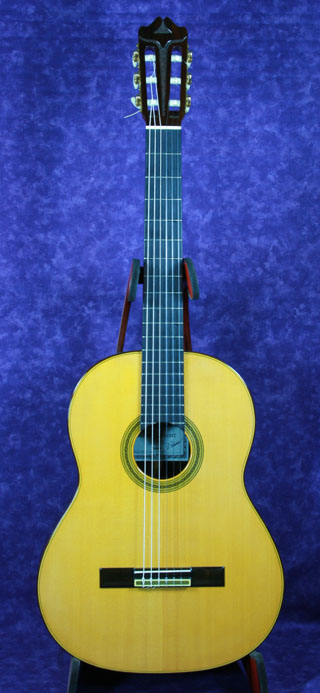 ネックは温度・湿度が変化しても狂いにくいマホガニーで、スペイン式一本棹方式でボディーと強固にジョイントされており、指板はエボニーです。