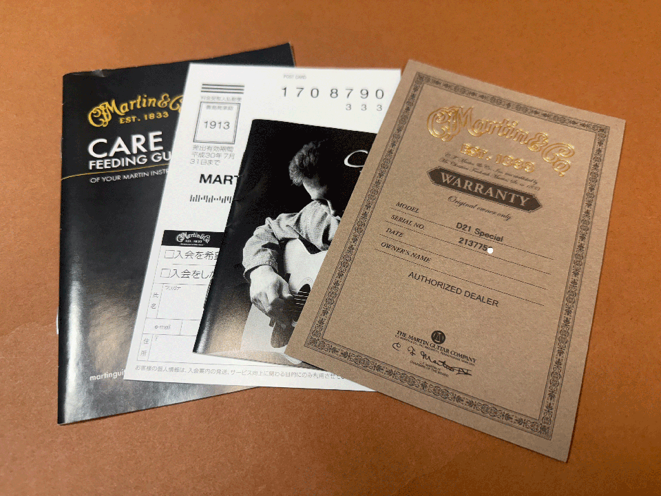 2017年に300本限定生産された希少モデル、Martin D-21 Specialの入荷です!本器はアメリカのシンガーソングライター”Jim Croce”の愛器として知られ、シンプルでエレガントなデザインが特徴の希少モデルです。トップにはシトカ・スプルース単板、サイド&バックにはローズウッド単板、ヘッドにはオールド・スタイル・ロゴにオリジナル・グローバー製オープンバック・ペグ、ローズ指板&ブリッジ、ボーンナット&ボーンサドル、ブラック&ホワイト・ボディーバインディング&ロゼッタ、木象嵌バックストリップ、ブラック・ピックガードのスペシャル・モデルです。サウンドは、フォワードシフトXブレーシングとスキャロップ加工により全域にわたりバランスの取れたサウンドで、豊かな音量の低域とクリアで明瞭な中高音は王道のマーティン・サウンドです。軽く爪弾いんても良しガツンとストロークで歌伴奏などジャンルを選ばずご使用が可能です。