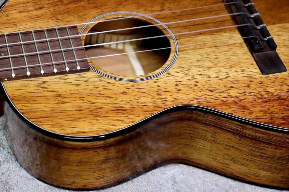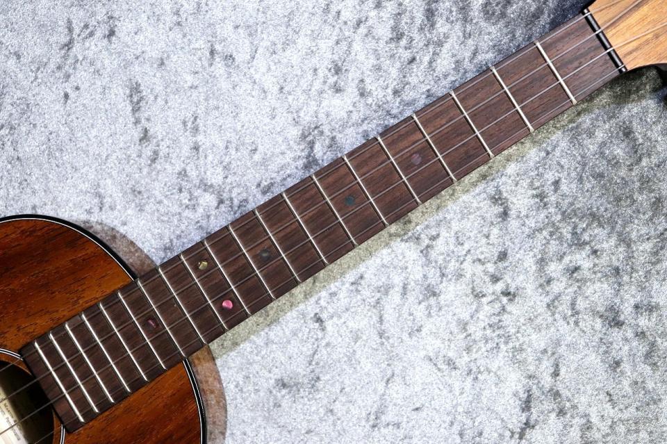 「TKE UKE」はボディにハワイアンコア単板、ブリッジと指板にローズウッド、