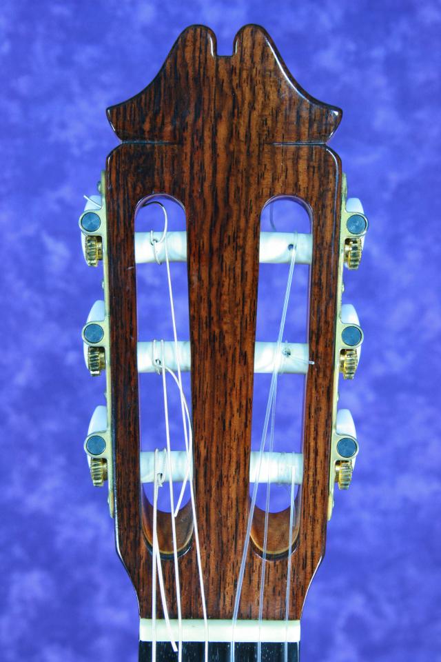ネックは、温度・湿度が変化しても収縮しにくいマホガニーで、伝統的なスペイン式一本棹方式で、ボディーと強固にジョイントされています。