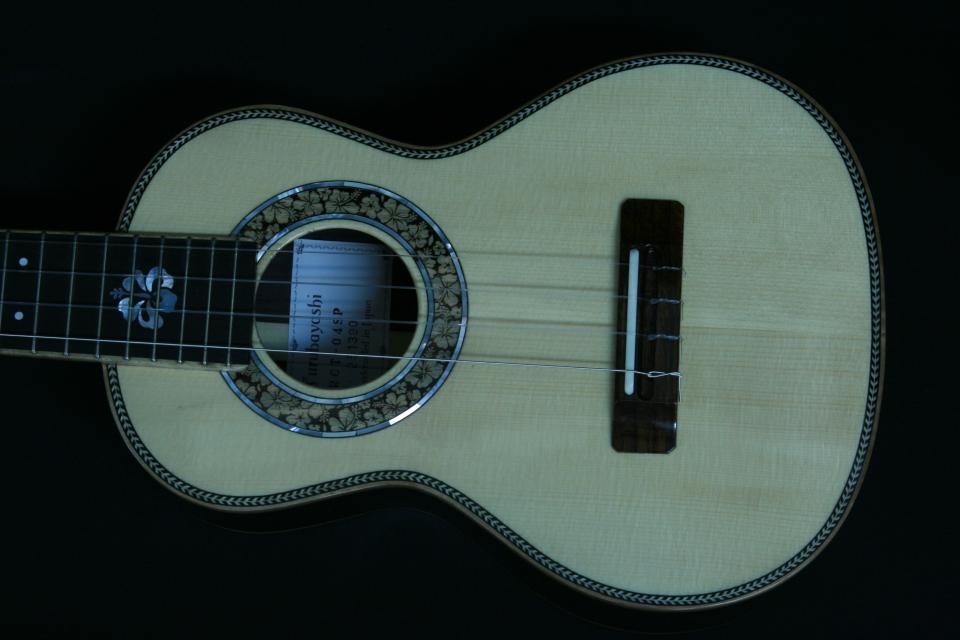 今は亡き手工クラシックギター製作家『茶位幸信氏』のもとでギター製作についての技術を取得したのち、 茨城県鉾田市に工房を構えている、手工クラシックギター製作家の古林達郎氏による完全手工ウクレレです。