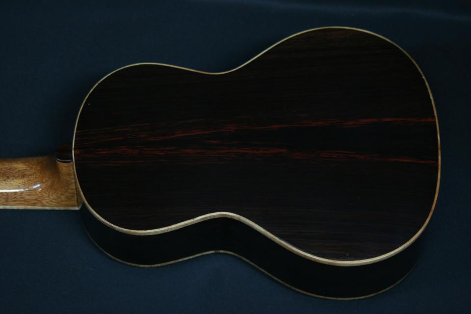 表面板はジャーマンスプルース単板で、サイド・バックはインディアンローズウッド単板です。