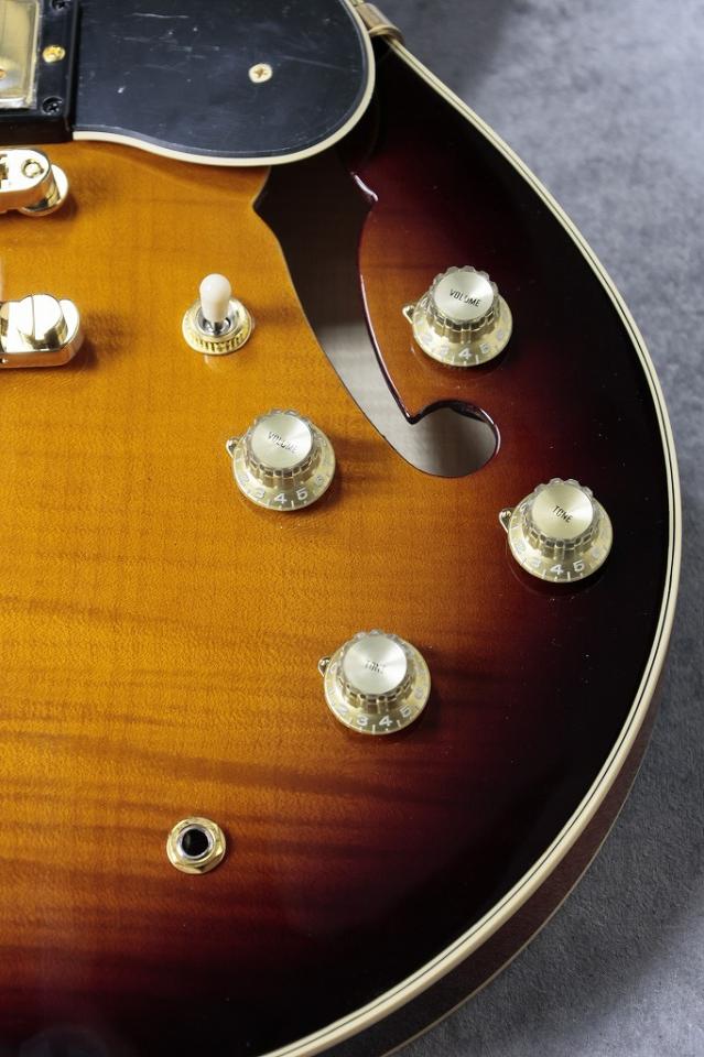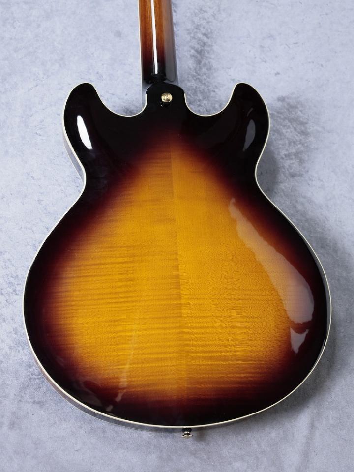 ボディ :アーチド・メイプル+シカモア(トップ&バック)、バーチ+シカモア(サイド)、メイプル+スプルース(センターブロック)