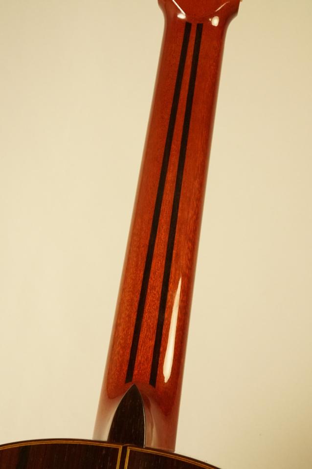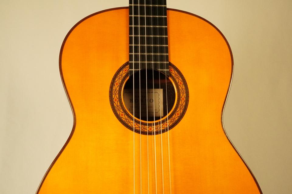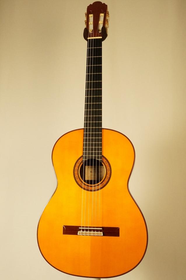 日本三大名工といわれる氏のギターは、日本で初めて世界に通用する製作家として広く知られている所です。バランスの良い豊かな音量、音響特性と日本の風土を考えた耐気候性の高さは、プロの演奏家の為の楽器です。