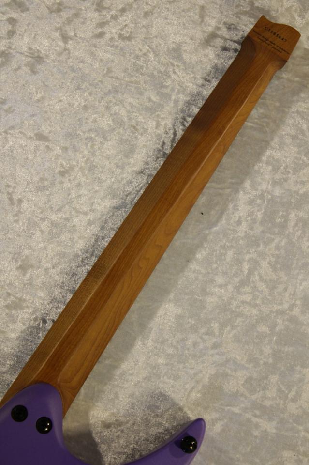 当モデルのスペックになりますが、ボディ材にメランチ材を採用、ネック材は強度がしっかりと担保された1ピースメイプルネック、指板材にはローズウッドを採用しております。