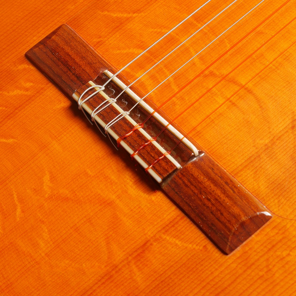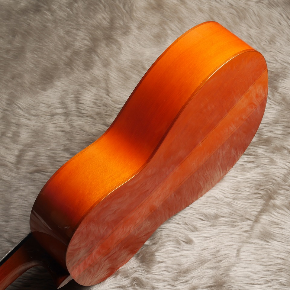 本器は、横・裏板にシープレスを使用した、伝統的な「白」のフラメンコギターです。キレのあるサウンドと、後付けピックアップによる高い実用性を兼ね備えています。