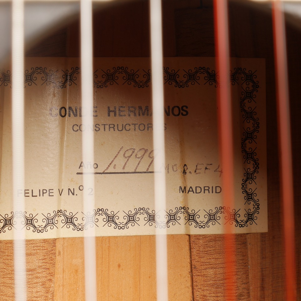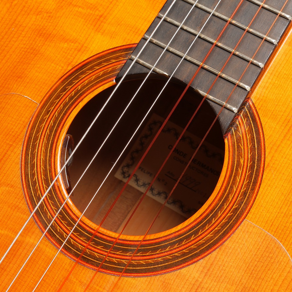 Conde Hermanos [コンデ・エルマノス]:ドミンゴ・エステソ(Domingo Esteso)の甥で後継者となったマリアーノ・コンデ(Mariano Conde)の2人の息子、フェリーぺ・コンデ(Felipe Conde)とマリアーノ・コンデII世(Mariano Conde II)がエステソの伝統を受け継ぎ改良を重ね、製作するフラメンコギター。立上がりの早さと太い低音、哀調を帯びた高音で、多くのフラメンコギタリストが使用する名器。(Conde Hermanos/コンデ・エルマノスのキーワー ド検索結果はこちら)