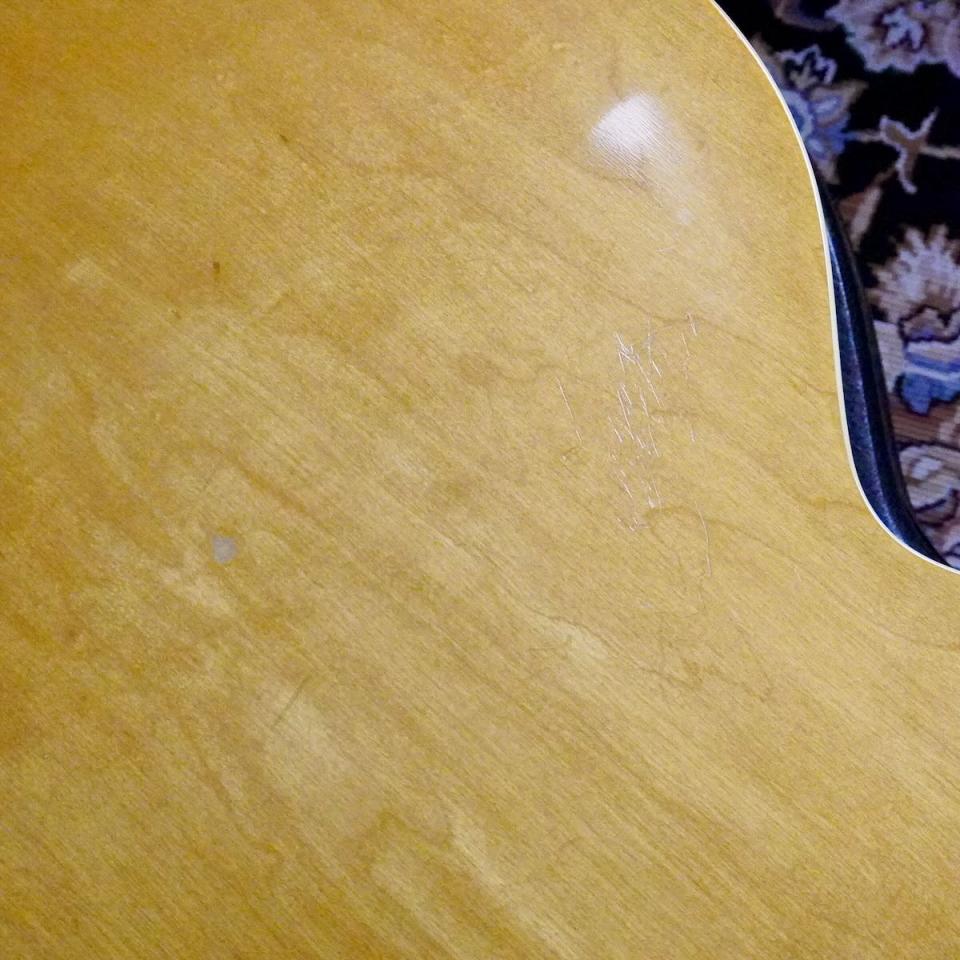 ボディーバックにバックル傷、年式程度の色やけやクラック等は見られるものの、致命的な傷の無いクリーンコンディション。エンドピン交換 (ネック側にストラップピン追加)、その他、チューナー(Gotoh)、ナット、フレット、ポット、コンデンサー(Black Cat)が交換されていますが、その他の主要部はオリジナルをキープ。