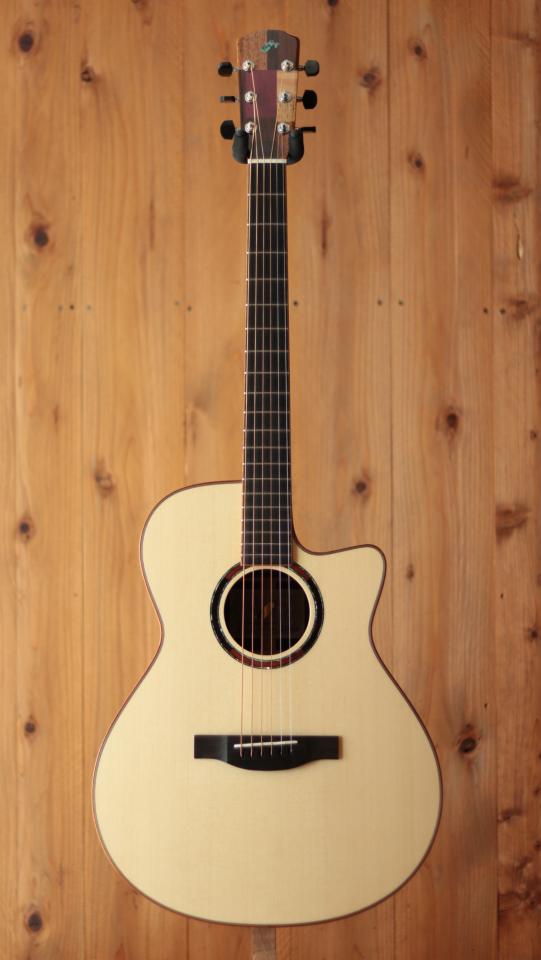 サウンドメッセ in OSAKA 2025限定モデル。フィンガースタイル向けにソロギターでの演奏性を追求したSシリーズをベースにした特別仕様。ヘッドの天神板には、ローズウッド、マホガニー、ハカランダなどの銘木を使用し、モーリス工場の熟練職人が1本ずつランダムにデザインを施した唯一無二の限定モデル。同じデザインが存在しない、全12本の希少なコレクターズアイテム。トップ材には良質のインゲルマン・スプルース、サイドとバックには厳選したローズウッドを採用。※1本1本ヘッド天神板のデザインが異なります。