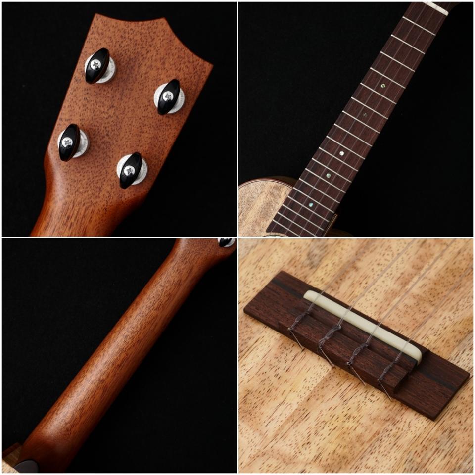 加えてカッタウェイ仕様になっている為、スタイリッシュなデザインに加えてハイポジションでの演奏性も高く、ソロウクレレにも向いた仕様と言えるでしょう。