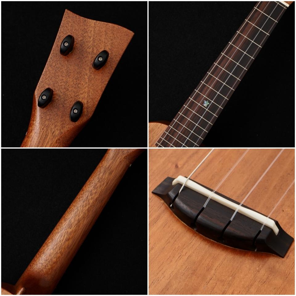 一般的なソプラノよりもやや小さ目なボディサイズと、やや長めな362mmスケール、14フレットジョイントを採用しております。