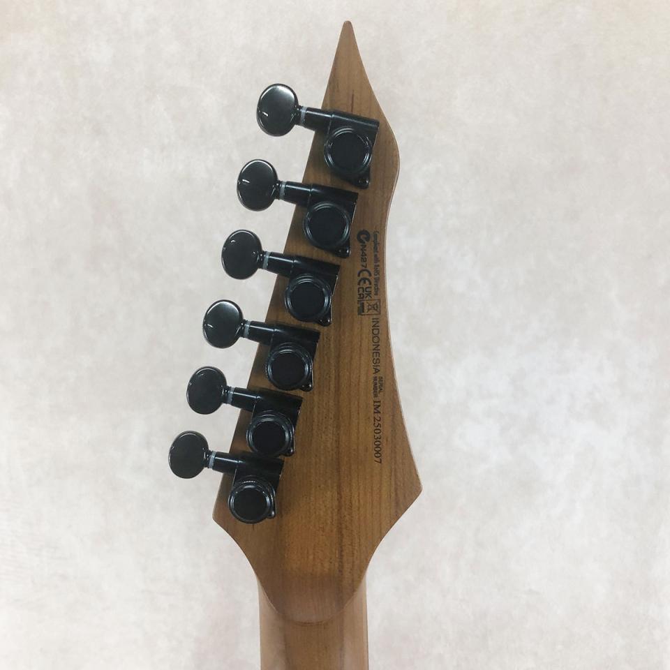 ヘッドストック・フェイスの一部はボディー・トップと同様にフレイム・メイプルが貼られたリバース・ヘッド仕様で、チューナーはチューニングの安定性が高いグローバー・ロッキングを搭載しています。