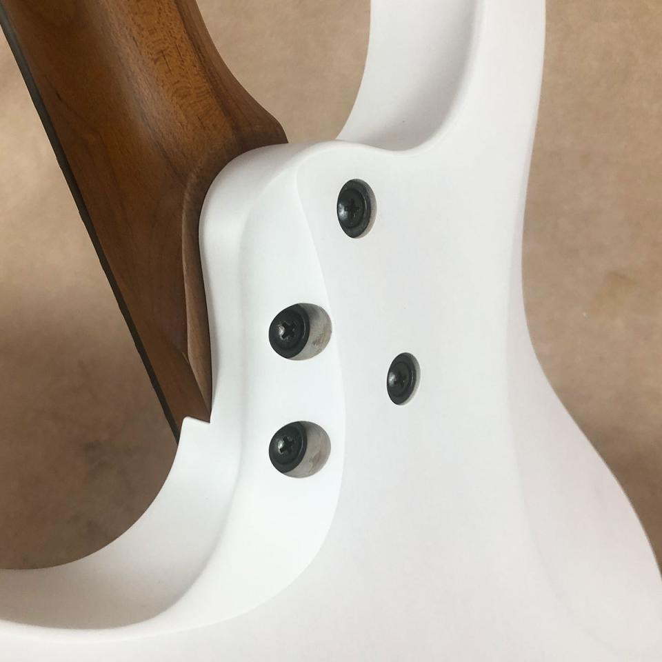 ネックは、ローステッド・メイプルを使用し、プレート・レスの4点留めボルト-オン方式でボディーにジョイントされています。