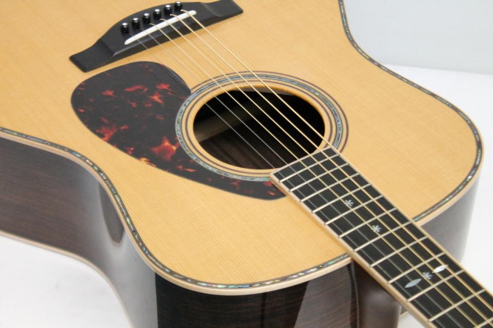 トップにはA.R.E(独自の加熱処理).を施したイングルマンスプルース単板を、サイドバックに裏側板はインドローズ単板を採用。すでに弾きこまれたようにこなれた鳴りが楽しめます。