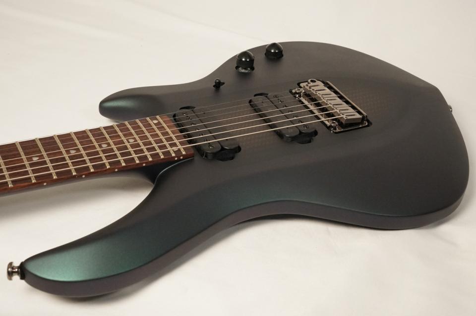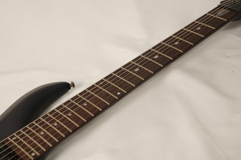 こちらは7弦仕様となります。7弦ローBも明快なサウンド、ネックの幅・太さ共に丁度良く難解なフレーズも弾きやすいプレイアビリティを確保しています。