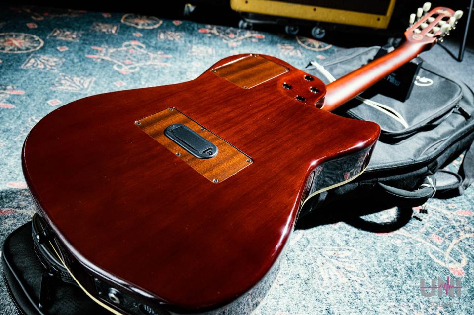 さらに弾き易さを求め、通常のガットギターと比べ弦高を低くセットしタイトなテンションを稼いでおり、細かなピッキングや弾き手の表現をリアルに出力します。