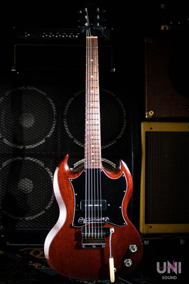 P-90が一発にボリュームとトーンのみというレスポールジュニアの系譜を継いでいるこのSGジュニア。