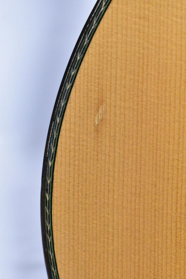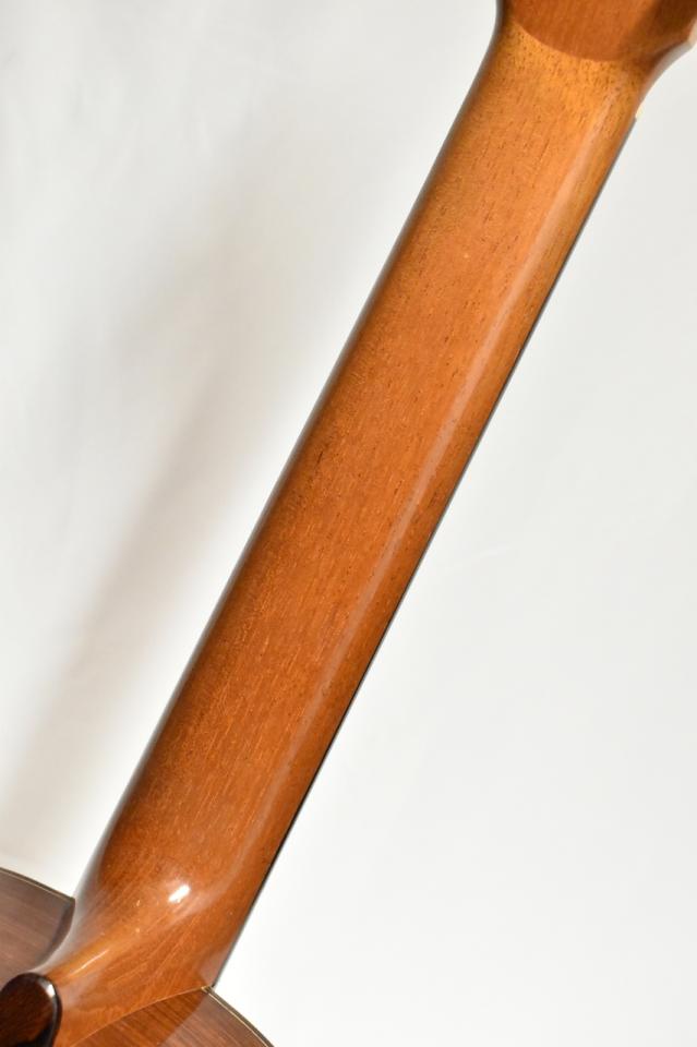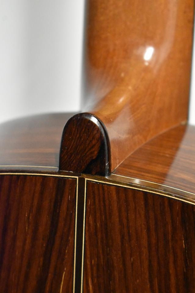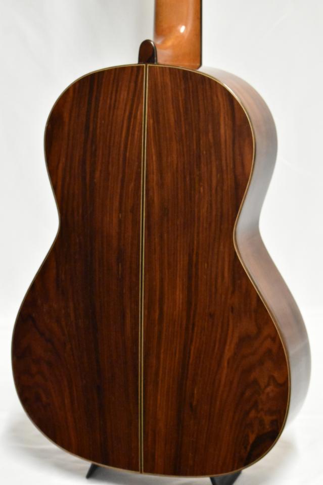 サイドバックの木目の良い中南米ローズウッドは叩いてみるとカツンと硬質な響き。