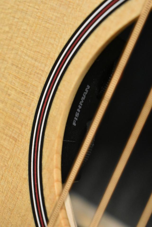 LX1Eはトップにスプルース単板、サイド&バックにはHPL(ハイプレッシャーラミネート)と呼ばれる人工材をボディに採用しております。