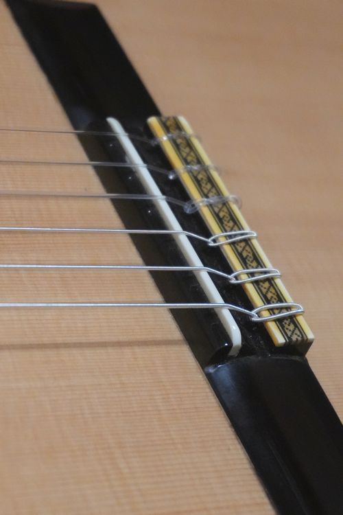 ブリッジ下1弦箇所に弦ハネ傷痕あり。