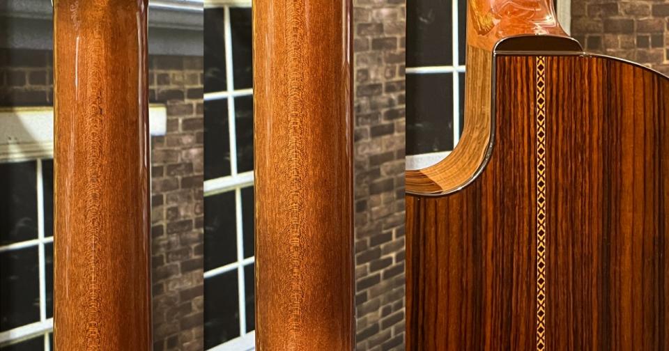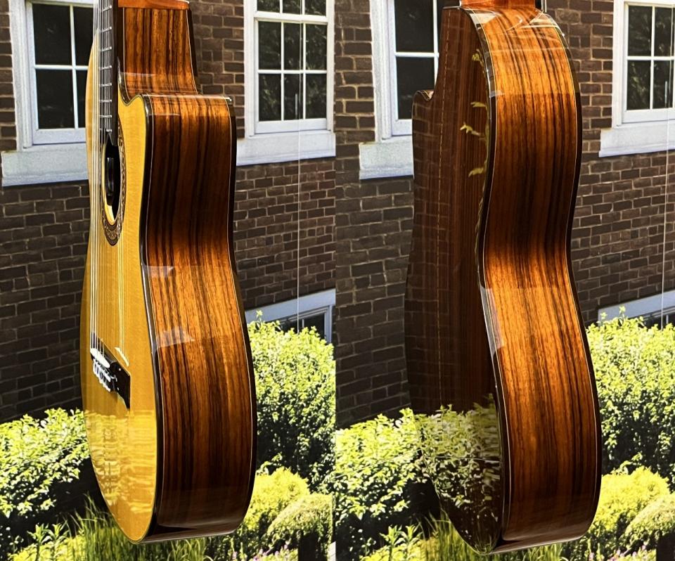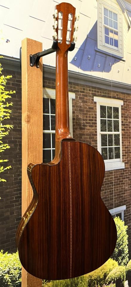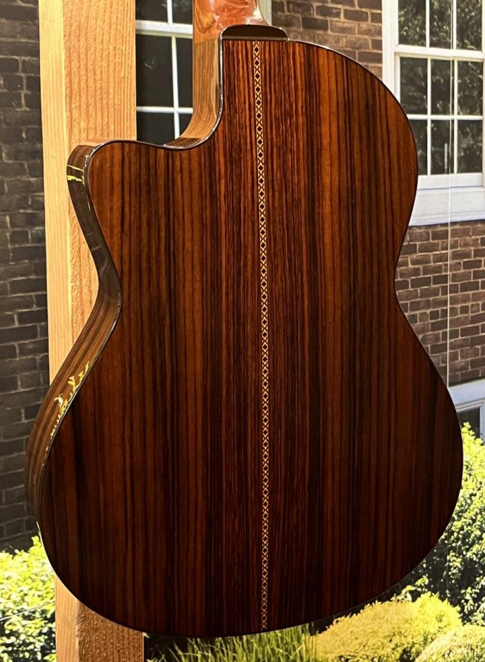 本器は表板にスプルース単板材、側板・裏板にローズウッド合板材を使用し、シングルカッタウエイ仕様、