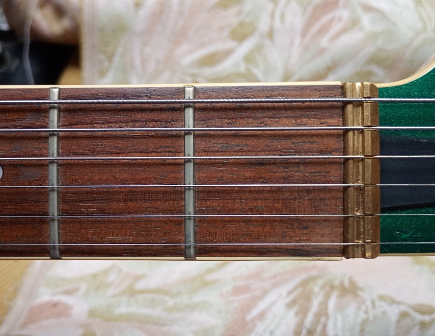特にアーム、ノブ、ペグ、ブリッジ、トレモロユニットに変色があります。