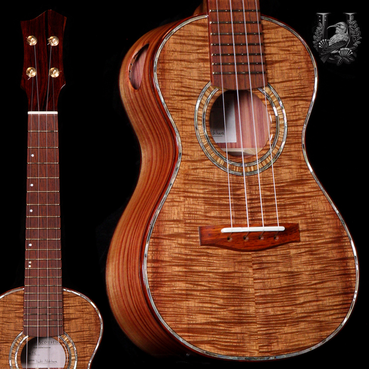 西原悠紀氏製作、マスターグレードハワイアンコア・トップ、チューリップウッド・サイドバックの豪華仕様コンサート