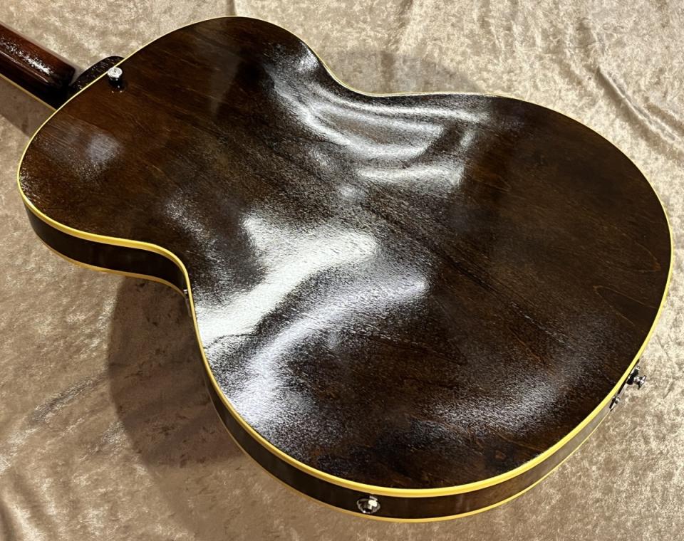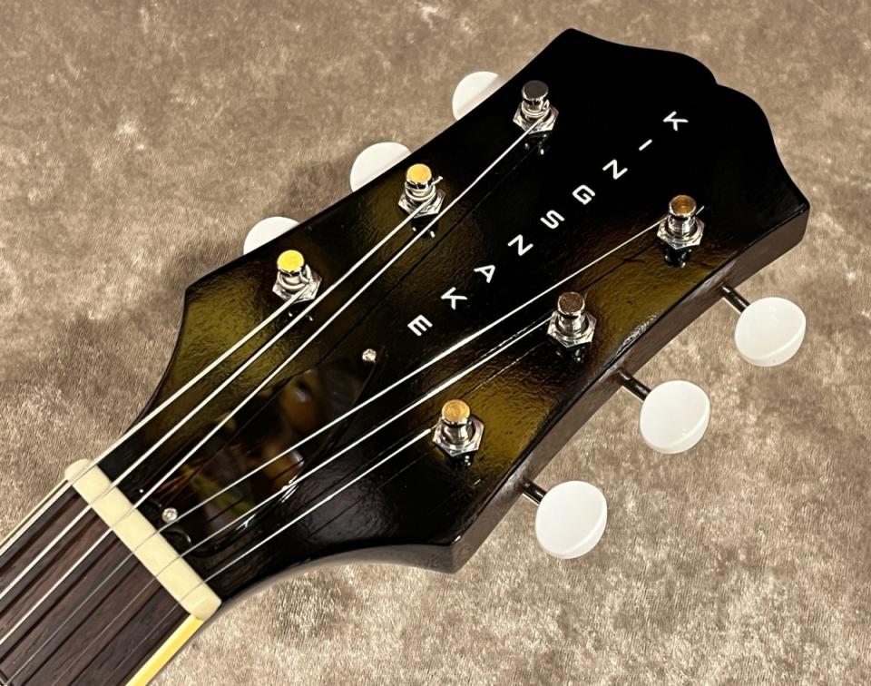 3.5mmの厚さのメイプル / スプルース / メイプルの3プライラミネート材を使用したボディトップ&バック構造で立ち上がりの早いレスポンスのフルアコです。