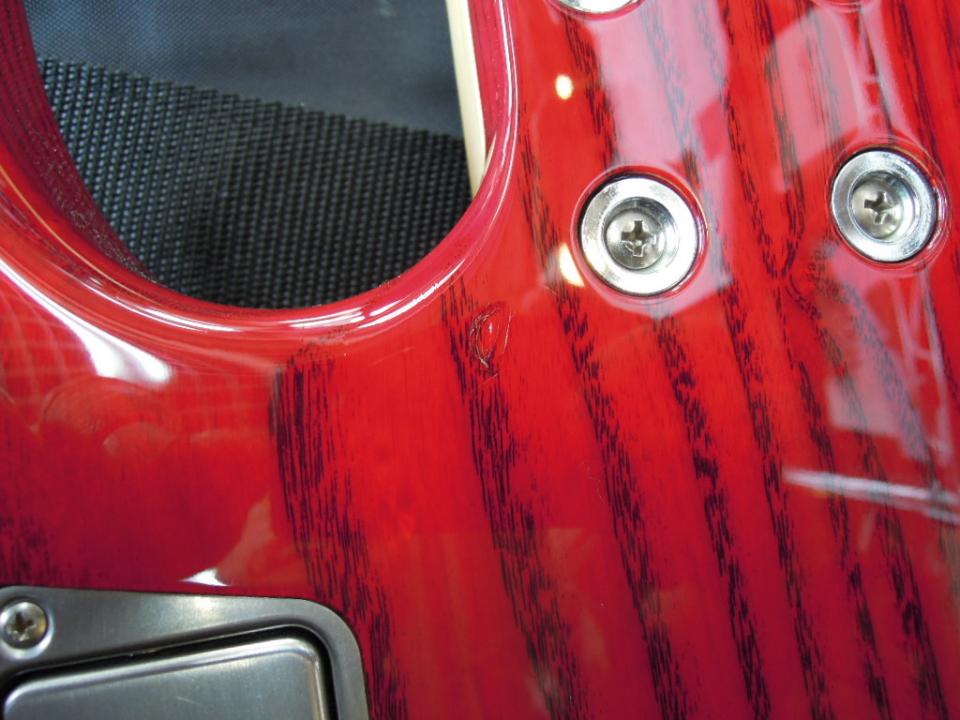 ESP AP-SL。ホワイトアッシュ・ボディにシースルーレッドの塗装を施した綺麗なベースです。スーパーロング・スケールによるリッチな低音をダンカンピックアップとイコライザーにより重低音と多彩な音作りが楽しめます。また、ボリュームノブをプルすることによりスラップモードに切り替わり、いわゆるドンシャリサウンドにすることが出来ます。ブリッジは弦の裏通しとノーマルが選べ多彩なテンションが楽しめます。このベースの状態は小さい打ち傷が1箇所ありますが他は非常に綺麗なコンディションで、ネックの反りやフレットの減りも殆ど見受けられません。■ボディ:ホワイト・アッシュ■ネック:メイプル■指版:ローズウッド(21F)■スケール:35インチ(889mm)■ナット幅:38mm■ペグ:ゴトーGB-11W■ピックアップ:セイモア・ダンカンSMB-4D×2■コントロール::VOL(w/slap sw),PU Balancer,3band EQ,Coil Sprit SW(series/pararel)■ギグバッグ付属■重さ:4.6kg