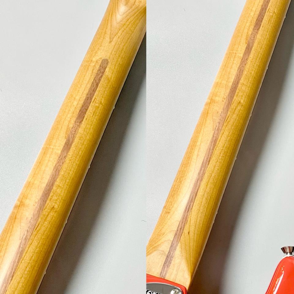 ネックフィニッシュ“Super-Natural” Satin Urethane Finish on Back of Neck with Gloss Urethane Headstock Face
