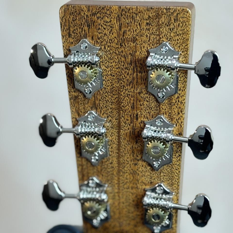 Fishman製のピックアップ「E-1」搭載。ピエゾのボリューム・トーンに加えチューナー機能が追加で搭載されたPUです。ピエゾPUを主とした音作りは従来同様ですが、ボリューム・トーンコントロール部にチューナーのオンオフスイッチが併設されており、アンプ出力をしていない時でもチューナーを使用することが出来ます。また、アンプ出力中はチューナーをオンにするとアンプ出力がミュートされる為ライブ演奏中のチューニングも可能。各コントロール部はコンパクトに収まっており生音への影響を最低限に抑えた優れたデザインのPUです。