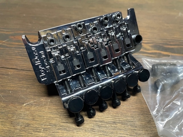 オリジナルのフロイドローズのデザインと機能を維持しながら、スチールの代わりに亜鉛合金のサドルを使用。