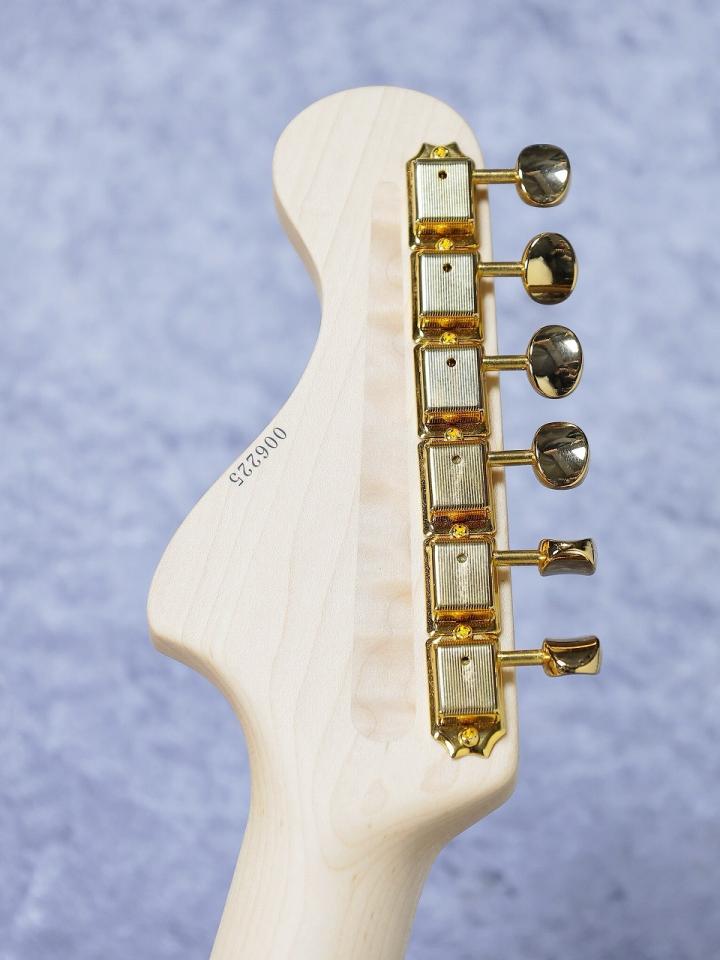 ピックガードはアノダイズドピックガードをマウントし、ゴールドパーツで合わせた個性ある仕上りに。