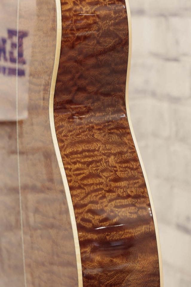 奥行きがあり見る角度によって表情の変わる極上のキルト杢に、美しい模様で発色の良いアバロン、クリアカラーのボディだからこそより一掃美しさを際立たせ、華やかさを演出しております。