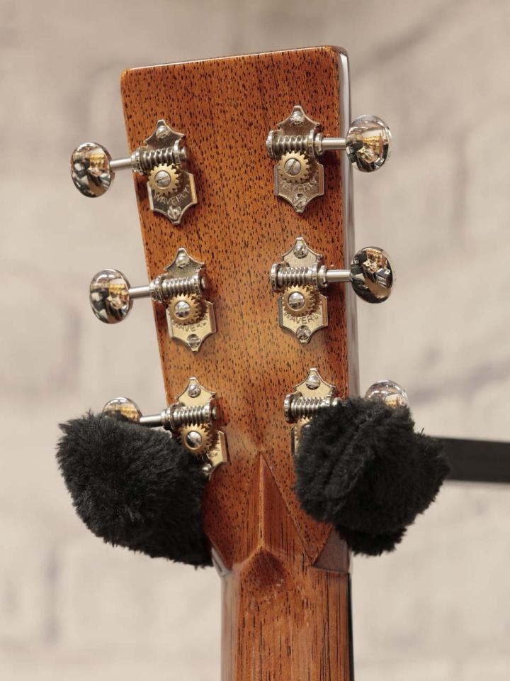 指板&ブリッジには、Style 45同様の最高ランク”プレミアムグレード(4段階中の4)”をセレクトし、目の詰まった黒々としたブラックエボニーが目を惹きます。