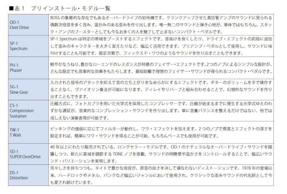 色褪せることのない魅力を持ち、現代においても新しいインスピレーションをもたらすBOSSの歴史を彩ってきたペダルたちをこの1台で体験!